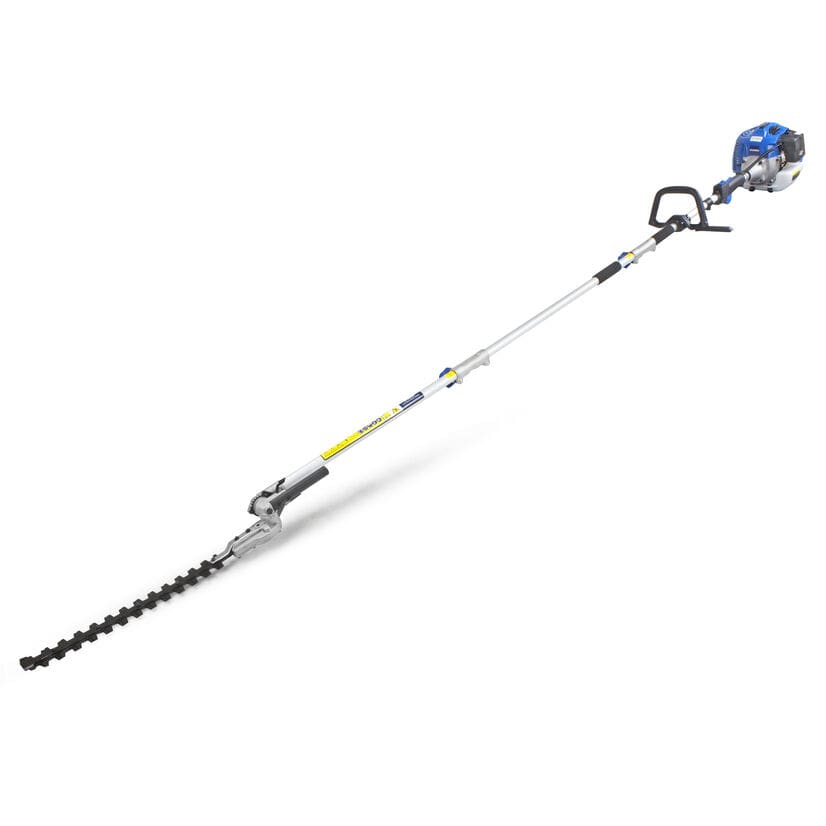 The HYPT5200X is a 52cc long-reach petrol pole hedge trimmer from Hyundai, designed to provide impressive cutting power on hedges that are tall and hard to reach.
