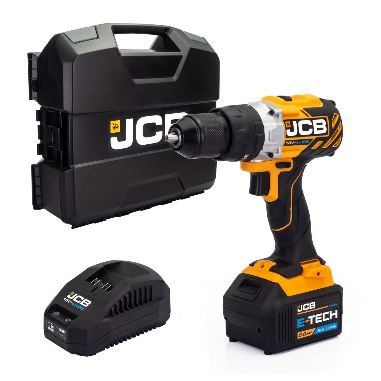 18V Combi Drill with Brushless Motor Technology 25% more power ? Brushless motors have fewer moving parts results in a quiet motor that never needs maintenance. The reduced friction enables a better use of available energy from the battery pack as there is no resistance from brushes 50% more run time ? Brushless motor technology means the carbon brush resistance is eliminated, so less battery energy is wasted. The efficiency of a brushless motor results in a greater run time from each charge 2-Speed variable gearbox for efficient drilling of various materials. Drilling, screw driving and hammer functions 20+3 position adjustable torque control for consistent application into a variety of materials Trigger switch with locking option for controlled application Built in LED for improved visibility Ergonomic design with rubber grip overmould for increased user comfort Belt clip that can be positioned on either side of the 18V Brushless Combi Drill 13mm keyless chuck for quicker bit changes Key Features Power and comfort for drilling, screwdriver and hammer operations Versatile use in different materials: Drilling and screw driving in wood and metal or impact drilling in masonry Features 2-Speed variable gearbox & 20+3 position adjustable torque control for consistent application into a variety of materials Trigger switch with locking option for controlled application & Built in LED for improved visibility Durable and robust power tool case included to transport your tools safely Ergonomic design with rubber grip overmould & Belt clip that can be positioned on either side for increased user comfort Battery & Charger included. Simply charge and you are ready to go! Backed up by UK support and our JCB 3 Year Warranty